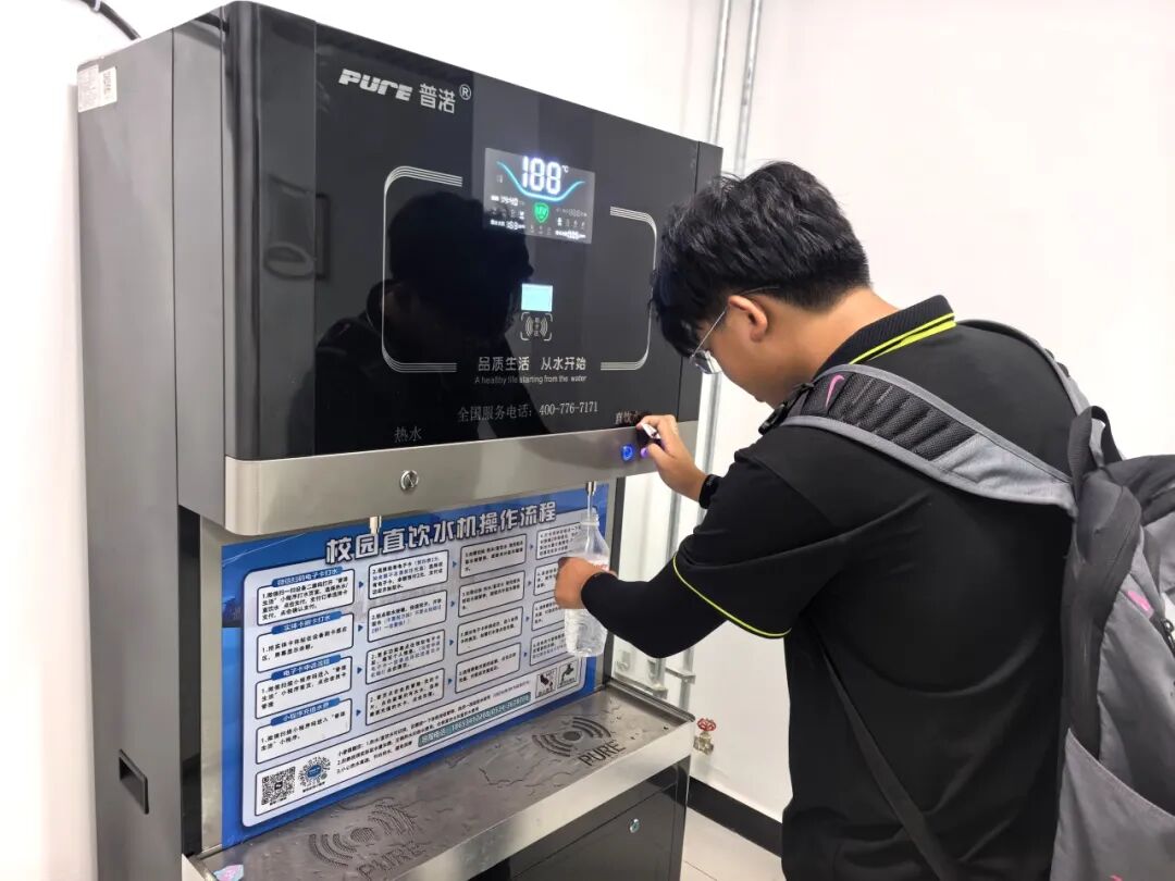 3.直饮水机使用指南:微信扫一扫→进入“普渃生活”小程序→选水温→预付2元→按键取水→接完后长按退出,余额自动退回;