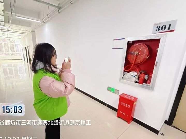 在校园公共区域,“学生考官”重点检查环境卫生整洁度、照明系统运行状态、消防设备配置标准及安全警示标识规范,精准排查各类潜在问题,切实提升公共空间安全水平与校园环境整体观感。