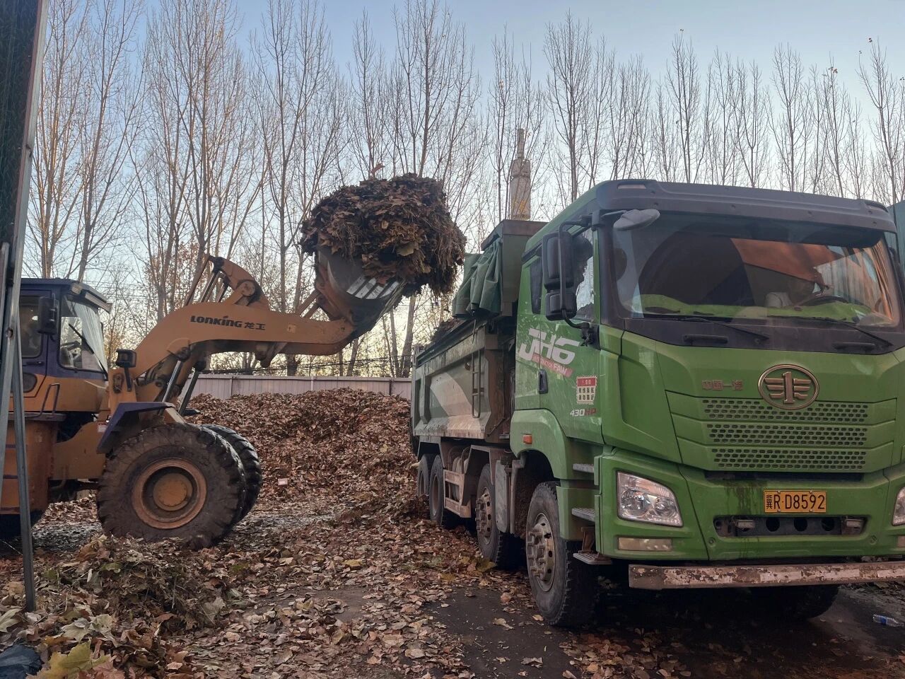 作业过程中,后勤物业团队充分发挥机械化与人工清扫的互补优势。扫路车加密主干道循环清扫频次,高效清除路面落叶、灰尘与杂物;高压清洗车以强劲水雾将绿地、广场、运动场等区域的落叶集中归集、装车转运;保洁员则重点清理步道缝隙、雨水篦子、路牙石边缘等机械作业盲区,运维工聚焦高空作业难点,通过规范操作完成房顶落叶清理,绿化工细致清理绿化带、绿篱丛内散落树叶,避免影响景观效果。各岗位协同发力,全方位消除环境隐患,做到“不留死角、不漏盲区”;针对突发大风导致的落叶激增情况,团队立即启动应急响应,临时增派作业人员与设备,缩短落叶滞留时间,快速恢复校园整洁。同时,对收集的落叶进行规范转运、集中处置。
