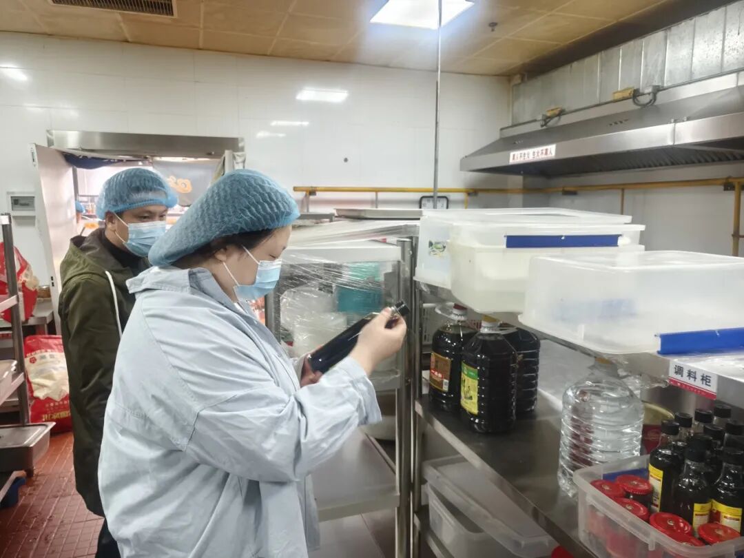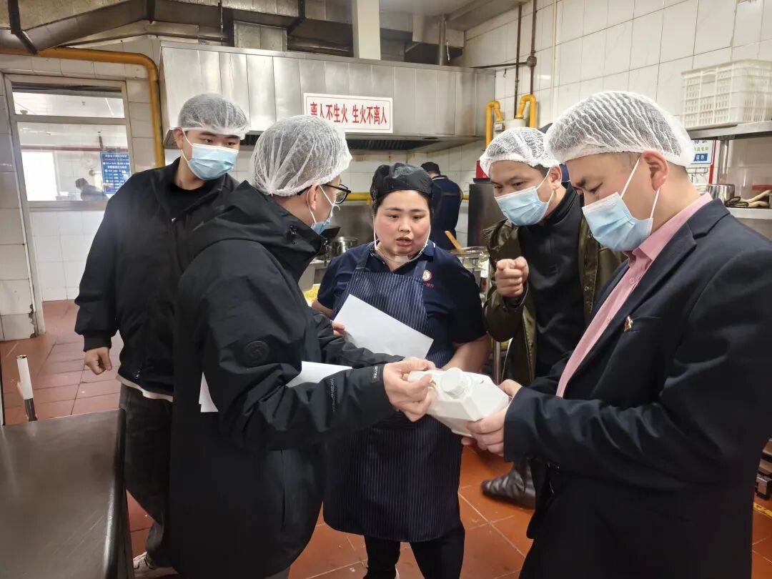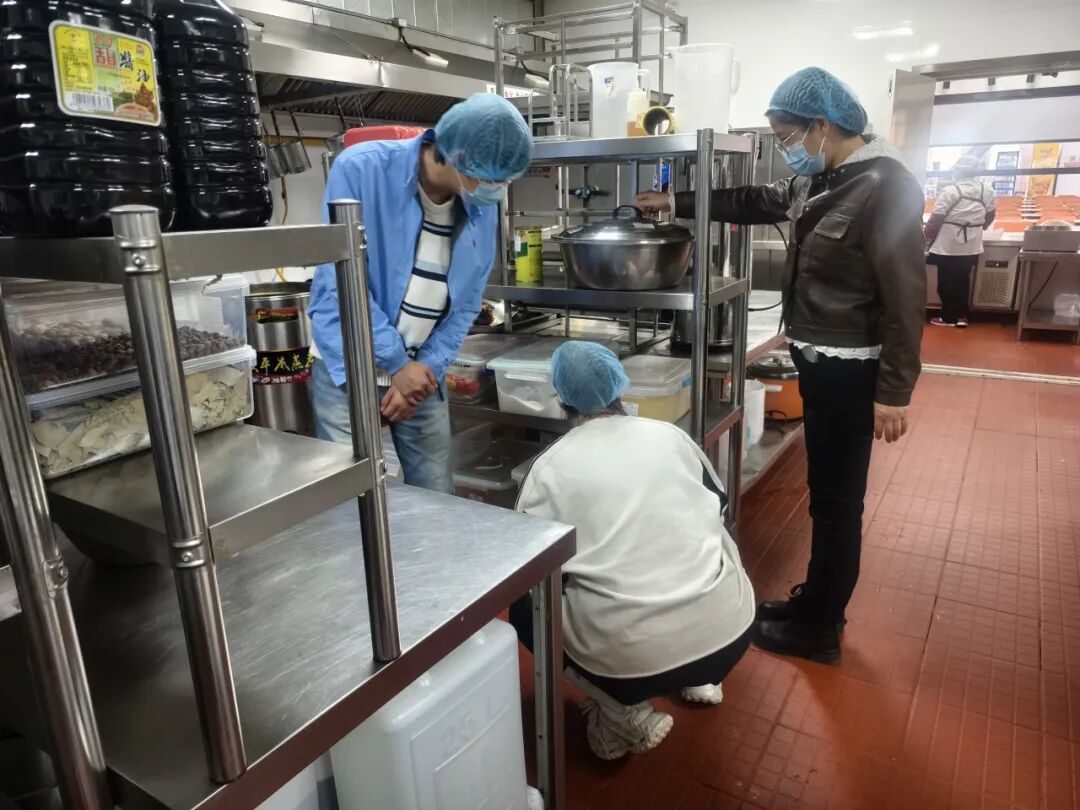 检查围绕校内各餐厅及食品类商业门店,针对食品经营许可、从业人员健康管理、原料采购索证索票、食品加工操作规范、餐饮具清洗消毒、食品留样等关键环节,进行了全面细致的现场检查。针对后厨环境卫生、食材存储条件、加工过程规范等重点领域,团队逐一排查,确保各项管理措施落实到位。
