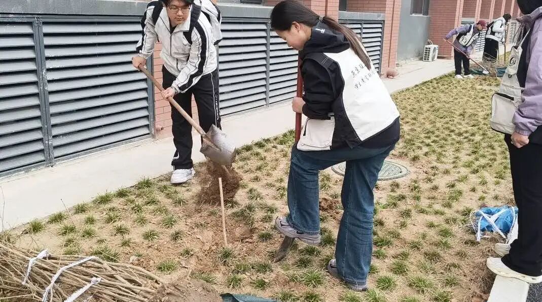 此次植树活动中,指导老师的专业指导、同学们和物业工作人员的通力协作,让每一株树苗都稳稳扎根校园,也让大家在亲手劳作中体会到了守护绿色的责任。从挖坑扶苗到填土浇水,每一个细致的动作,都是对自然的敬畏;每一滴挥洒的汗水,都是对绿色校园的期许。同学们在实践中收获的不仅是种植技巧,更有对劳动价值的理解,对生态文明的认同,这份感悟,正是植树节留给我们最珍贵的礼物。