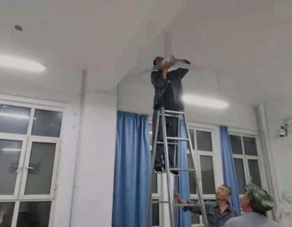 服务师生办实事抢修电扇送清凉新的大楼还在施工旋转的电扇搅动着空气侧耳倾听你会听见高温的声音为了让同学们有一个舒适的学习环